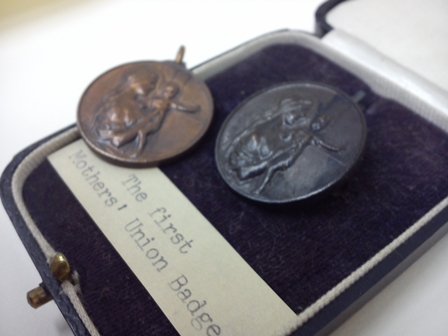 The Mothers’ Union was originally represented by a drawing of a mother and child by the artist Heywood Sumner, Mary’s son, as can be seen in the image of a medallion and a brooch pin dated from approximately 1910. Badges, brooches and other material items were important to members as treasured possessions while also embodying the spiritual motivation behind the organisation.