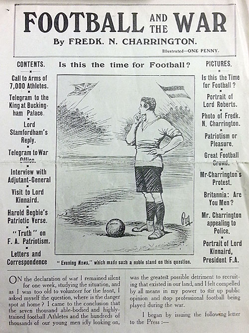 Frederick N. Charrington. Football and the War. London: Book Saloon, [1914]