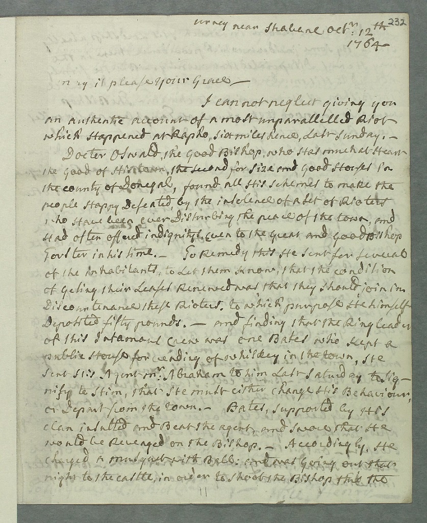 Secker 2 comprises a miscellany of papers, the largest section relating to the project of Benjamin Kennicott to collate all known Hebrew manuscripts of the Old Testament. Also included are papers relating to Ireland. Amongst these, as well as 16 letters to Secker from the Dean of Killaloe, published by the Church of England Record Society in 2010, was found an important letter to Secker from his friend John Bowes, Lord Chancellor of Ireland, giving a vivid first-hand account of the anti-union riots in Dublin in December 1759.