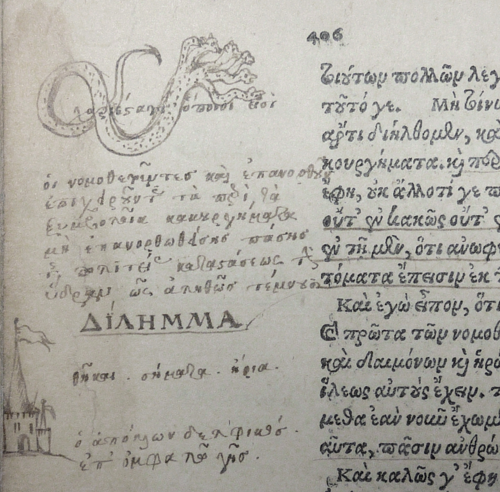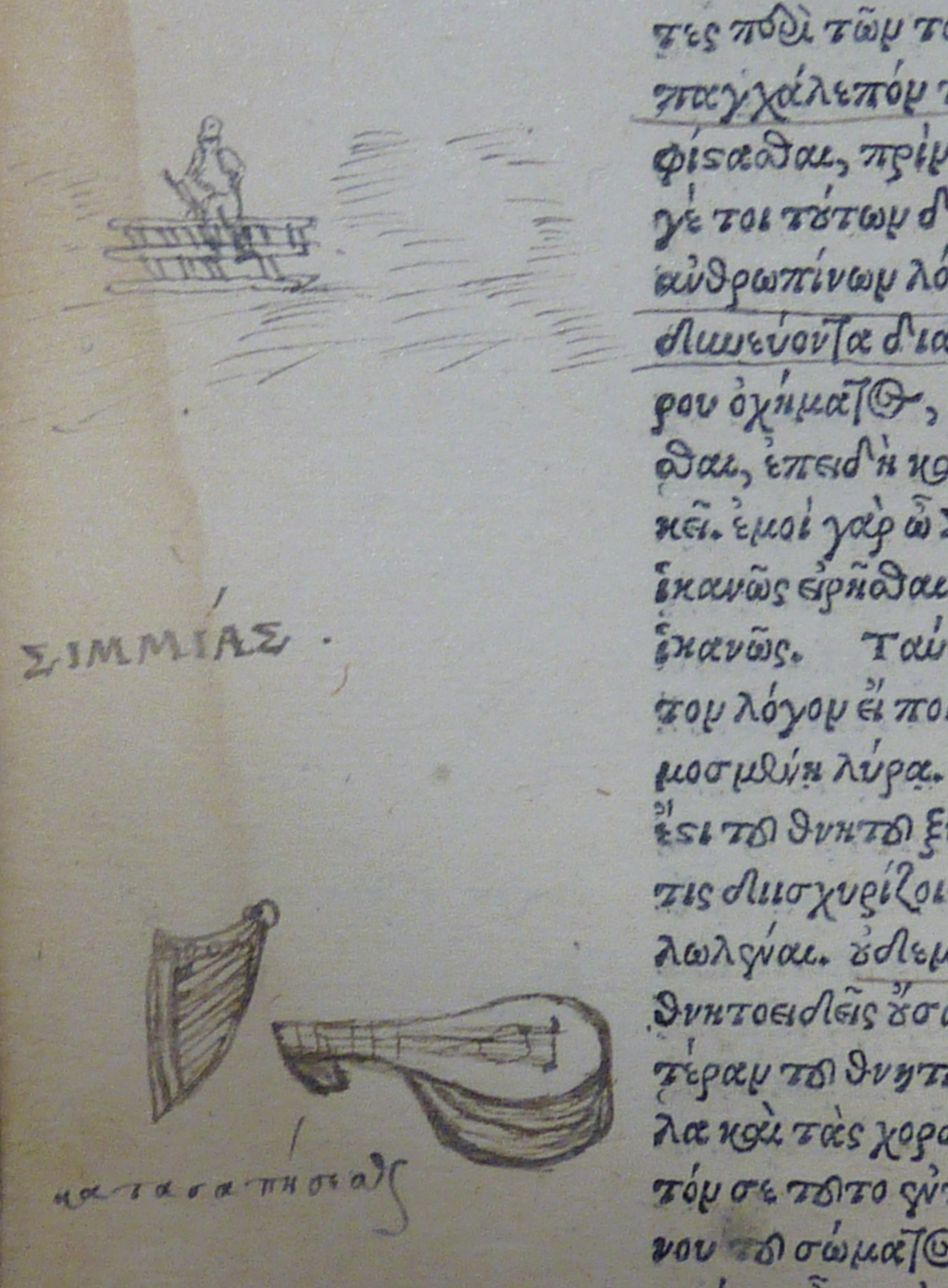 P1200920When the Library of Sion College closed its doors in 1996, the College’s collection of rare and early printed books were transferred to Lambeth Palace Library. As well as forming an important and wide-ranging collection in their own right, these books are especially interesting for their provenance, as many of the volumes were owned and donated by prominent citizens of 17th century London, including scholars, clergy, merchants and aristocrats. These citizens have left significant evidence of their former ownership, and inscriptions, bookplates, personal bindings and marginal annotations are all common additions. P1200943One book in particular, a 1534 edition of the works of Plato printed in Basel by Johann Walder, is full of hundreds of drawings, miniature portraits, detailed landscapes, notes,and other marginalia. On the title page is a signature written in Greek: “Θωμας ο Σμιτθος”, i.e. Thomas Smith.