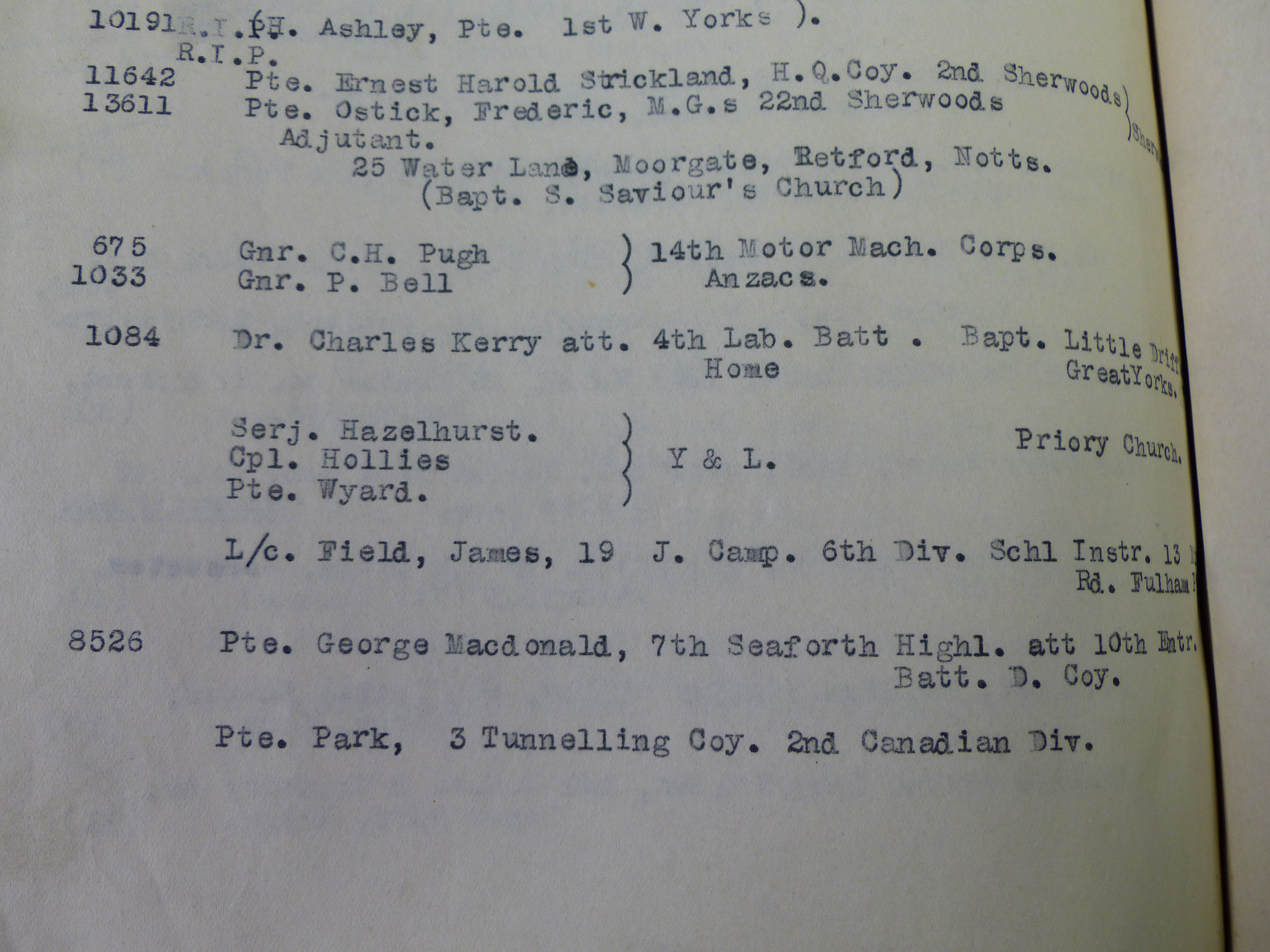 At Lambeth Palace Library a register is held of communicants and candidates for confirmation at Toc H between 1915 and 1917 (MS 3211). It gives us information about their names, rank, and sometimes regiment and civilian address.