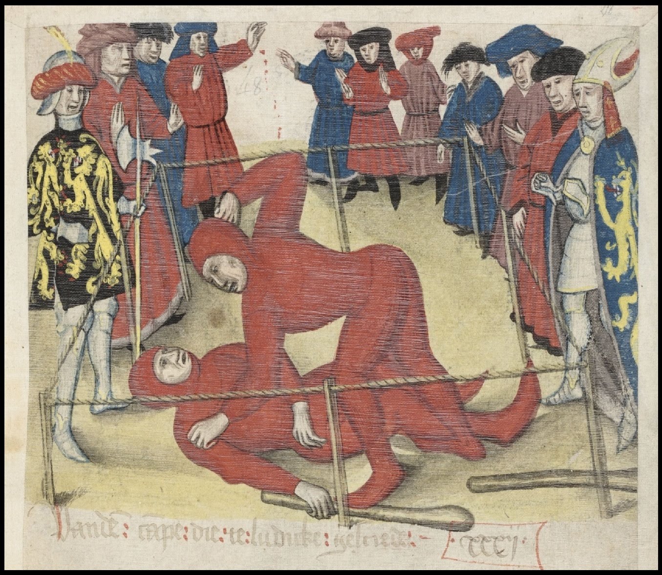 As you can see there is a certain formality and form attached to this; there is a clear statement of what happened, to who, and how. Of note if the loser of the duel survived in addition to being judged guilty of the crime they were also considered guilty of perjury.[2] Following this the combatants are detained and forbidden from speaking to one another until the combat.