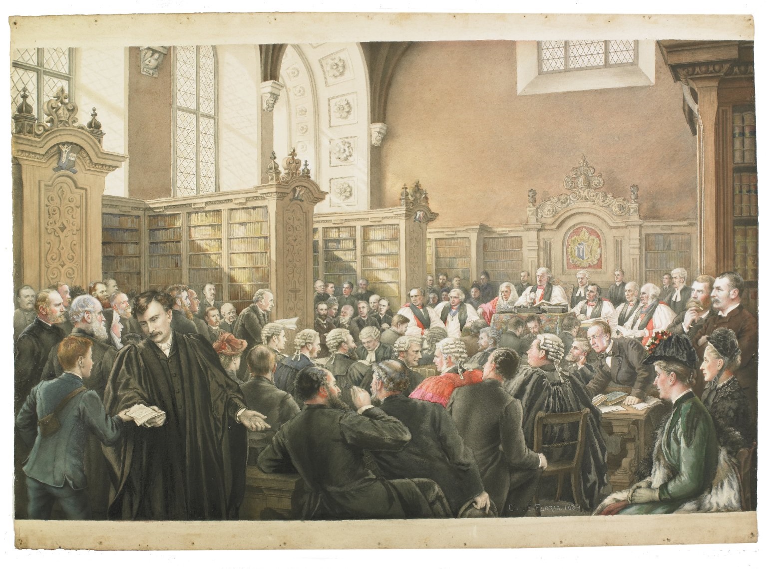 The proceedings began on the 12th February 1889, taking place in the Great Hall at Lambeth Palace, at that time (and until very recently) part of Lambeth Palace Library. The petitioners, acting on behalf of the Church Association, were formally Ernest de Lacy Read & others. Five Episcopal Assessors were appointed to assist Benson: Frederick Temple (Bishop of London), William Stubbs (Bishop of Oxford), Anthony Thorold (Bishop of Rochester), John Wordsworth (Bishop of Salisbury), and James Atlay (Bishop of Hereford). Various points of protest and ecclesiastical law were considered before the actual trial itself took place from the 4th to the 25th of February 1890.