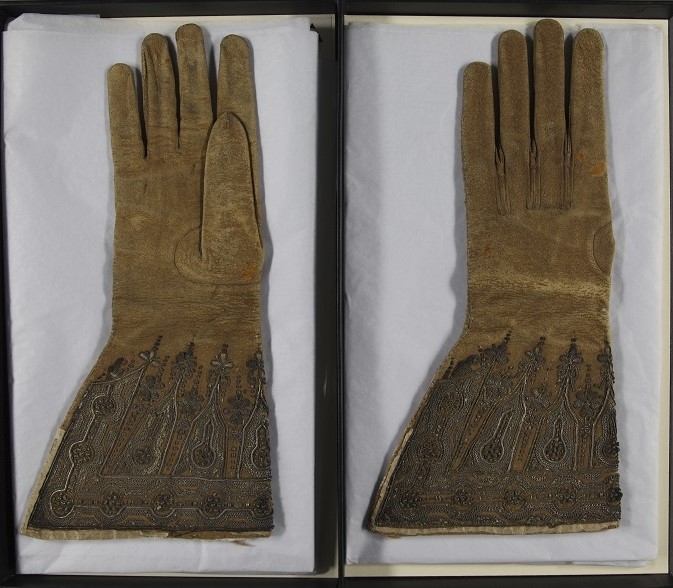 The gloves were displayed in the Great Hall at Lambeth Palace for many years, and have been loaned to several major exhibitions, the most recent being Samuel Pepys: plague, fire, revolution at the National Maritime Museum, Greenwich in 2016. When the gloves went on loan to the British Museum for the Treasures of Heaven exhibition in 2011, the Museum undertook conservation work on them as part of the loan agreement, ensuring that future generations can look upon them and wonder if the stories told about them are true.